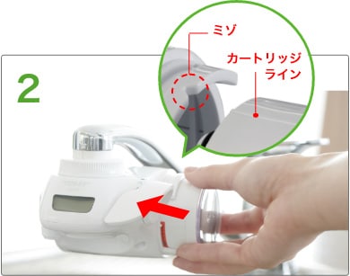 - カートリッジ交換直後は浄水を30秒ほど少しずつゆっくりと流してからお使いください。