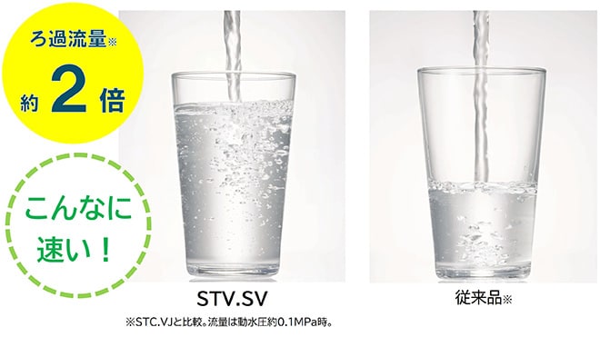 - STC.VJの約2倍。流量は動水圧約0.1MPa時。